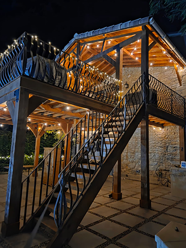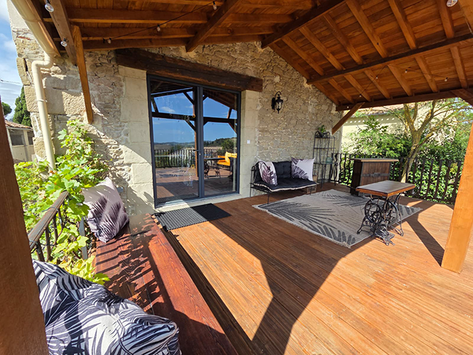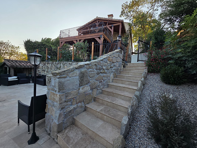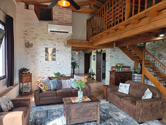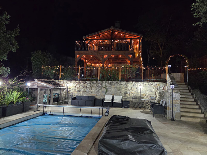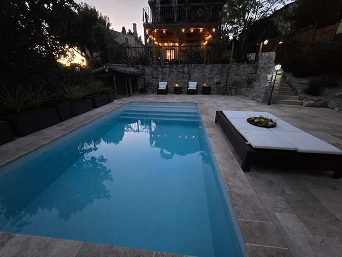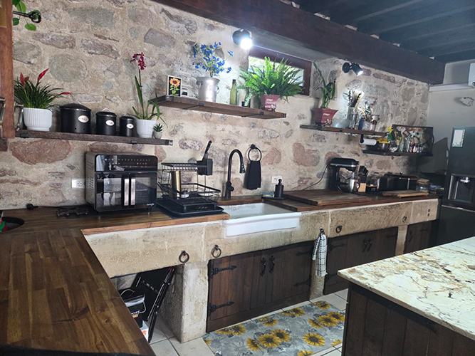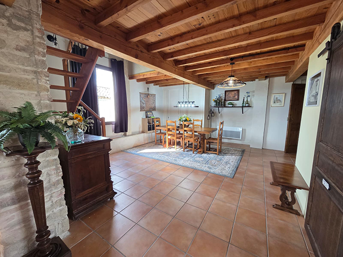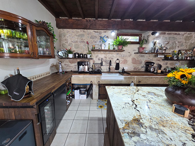 This charming and custom home has a private pool, wide open floor plan, and many unique touches. This is a special setup with a partially detached home and an attached gite that is all on one property. The main house has 3 sleeping areas and 3 bathrooms all spread over 3 floors. Large cook’s kitchen with gas stove, full-size American fridge, wine cooler, and HUGE island.