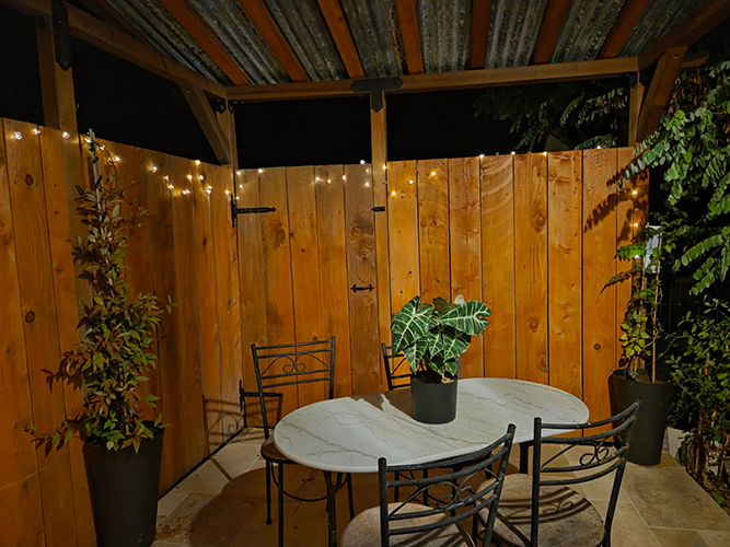 The property has a nice garden with a sitting area below the pool, an outdoor BBQ cooking area, and is fully fenced.