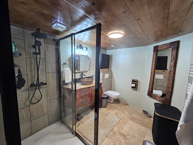 Attached Gite (by special invitation only) is a very large 1 bedroom/1 bathroom with kitchenette/office and A/C on 1.5 floors! French doors off the gite bedroom leads to a private patio to have your wine and snacks. Main home has a combined washer and dryer.