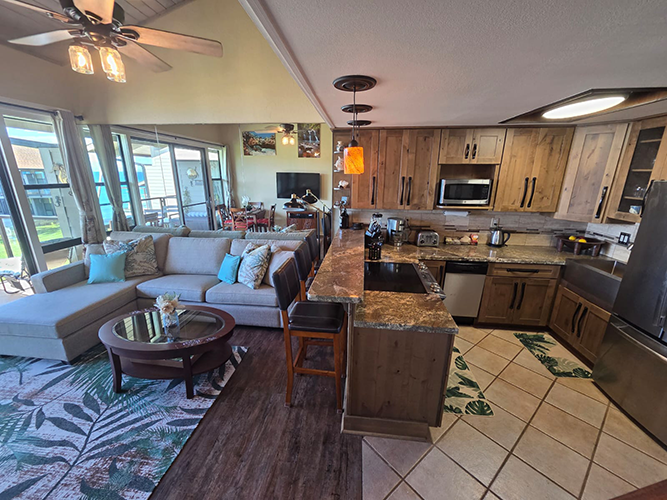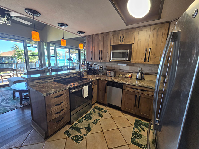 *This unit has recently had a total remodel and is in pristine condition! Stainless steel appliances, fresh paint, flooring, new cabinets, granite countertops, and new furniture and art. All the little essentials you need to feel like you are at ‘home’. We welcome you to become part of our ‘Ohana’. Happy Travels!